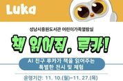 (케이엠뉴스) 성남도시개발공사 중원도서관은 지역 어린이들에게 인공지능(AI) 기술을 활용한 새로운 독서 체험 기회를 제공하기 위해 ‘책 친구 로봇, 루카(LUKA)’를 오는 12월까지 운영한다고 21일 밝혔다. ‘루카’는 책 표지를 인식해 음성으로 내용을 읽어주는 인공지능 독서로봇으로, 유아와 어린이가 스스로 책을 읽고 들으며 독서의 즐거움을 느낄 수 있도록 돕는 AI 독서학습 보조기기다. 이번 사업은 루카를 활용한 전시와 기관 협력 프로그램을 통해 어린이들에게 친숙하고 흥미로운 독서 경험을 제공하고자 마련됐다. 먼저 중원도서관에서는 한 달간 ‘책 읽어줘! 루카’ 전시가 진행된다. 어린이·가족열람실에 루카와 전집을 함께 비치해, 어린이들이 직접 로봇을 체험하며 자연스럽게 책 읽는 즐거움과 호기심을 느낄 수 있도록 운영된다. 시민 누구나 자유롭게 참여 가능하며, AI 기술과 독서가 결합된 혁신적인 독서문화를 체험할 수 있는 특별한 기회를 제공한다. 또한, 도서관 밖에서도 아이들이 책과 만날 수 있도록 ‘책 나들이 ON 루카’ 협력 프로그램을 진행한다. 성남시 내