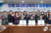 (케이엠뉴스) 강원특별자치도교육청은 11월 6일 인제군청 2층 소회의실에서 인제군청, 인제교육지원청과 ‘인제 더나은교육지구 연장지정 업무협약’을 체결했다. 이번 협약은 2018년 제1기(4년), 2022년 제2기(4년)에 이어, 2026년부터 4년간 제3기 더나은교육지구 사업을 본격 추진하기 위해 마련됐다. 세 기관은 ‘인제에서 더나은 인재를 함께 키우다’라는 비전 아래, 지역 여건을 반영한 교육 협력 사업을 추진하기 위해 매년 4억 원(교육청 2억 원, 군 2억 원)을 지원한다. 인제 더나은교육지구는 지역의 특수성을 반영해, 지역 기반 돌봄·배움터를 통한 전인적 성장 지원 및 지역 교육생태계 조성을 목표로 한다. 지구중점 공동사업인 지역 특화 프로그램 ‘인제닮은인재프로젝트’를 통해 지역 인적 역량과 자원을 연계한 교육생태계를 구축하고, 학생들에게 지역의 역사·문화·생태를 체험할 수 있는 기회를 제공하고 있다. 지역 자원 연계 중심의 마을자람터 사업으로 △학부모 행복성장 프로젝트 △인제 꿈자람 어린이 큰 잔치 △디지털 세상 속 리더 되기 △나라사랑! 병영체험! 등을 운영한다.