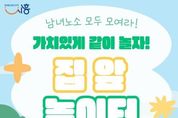 (케이엠뉴스) 시흥시는 오는 10월 25일 오전 10시부터 12시까지 매화동 어린이 물놀이장(매화동 복지회관 뒤편(매화동 205-3))에서 ‘집앞 놀이터’ 프로그램을 운영한다. ‘집앞 놀이터’ 프로그램은 건강아파트 만들기 사업의 일환으로 추진되는 프로그램으로 관내 건강아파트 지역주민들과 아동·청소년이 다양한 놀잇감과 운동 소도구를 이용하는 신체 놀이 활동이다. 이번 프로그램은 지역 내 유휴 공간인 어린이 물놀이장을 적극 활용함으로써 더 많은 주민의 참여를 유도해 주민들의 건강 수준을 향상하고, 스트레스 해소에 도움을 줄 수 있도록 구성돼 있다. 시흥시민이라면 누구나 무료로 자유롭게 참여할 수 있으며, 사전 신청 없이 현장 참여도 가능하다. 특히 플레이스타터와 함께하는 미션 놀이를 통해 참여자들의 흥미를 유발하고, 놀이 활동을 통해 가족구성원과 친구 간의 소통 강화로 유대감이 증진되는 기회의 장이 될 것으로 기대된다.