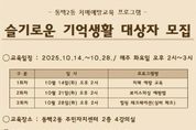 (케이엠뉴스) 용인특례시 기흥구 동백2동은 10월 14일부터 28일까지 3주간 진행하는 치매 예방 프로그램 ‘슬기로운 기억생활’ 참여자를 모집한다고 22일 밝혔다. 프로그램은 10월 14일 1차 교육인 ‘알쏭달쏭한 치매예방교육’을 시작으로 10월 21일 2차 교육인 ‘보이스피싱 예방법’이 진행된다. 3차 교육은 10월 28일 ‘힐링 레크리에이션(실버체조)’가 이어진다. 교육은 동백2동 지역사회보장협의체의 분야별 전문가 위원들의 재능 기부로 운영되며, 어르신의 인지 기능 증진과 정서적 안정, 삶의 활력 증진을 위해 기획했다. 모집 대상은 지역내 65세 이상 주민 30명이다. 신청 방법은 동 행정복지센터 방문 또는 전화를 통해 선착순 모집한다. 동백2동 관계자는 “이번 프로그램은 어르신들이 건강하고 행복한 생활을 할 수 있도록 지역사회 구성원들이 함께 한다”며 “앞으로도 지역 맞춤형 복지사업을 발굴해 주민 삶의 질 향상에 노력할 것”이라고 말했다.