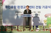 (케이엠뉴스) 용인특례시는 14일 오후 처인구 포곡읍 용인레스피아(231-1번지)에 있는 ‘용인종합 환경교육센터’ 기공식을 열었다고 15일 밝혔다. 2027년 6월 준공을 목표로 공사가 진행될 예정인 ‘용인종합 환경교육센터’는 2027년 하반기 시범운영을 거쳐 정식 개관할 예정이다. ‘용인종합 환경교육센터’는 총 사업비 199억원(시비 199억원·한강수계기금 80억원)이 투입되며, 지하 1층, 지상 3층 연면적 2702㎡ 규모로 조성될 예정이며, ▲강당 ▲학습실 ▲유아교육실 ▲전시실 ▲소모임실 등 다양한 교육·체험 공간을 갖췄다. 건물은 에너지효율 1등급을 목표로 한 ‘넷제로(Net-Zero) 건축물’로 설계해 태양광 발전 등 친환경 에너지 기술이 적용된다. 이 곳에서는 ▲환경실천 시민견학 및 체험교육 ▲환경교육 교재 및 프로그램 개발·보급 ▲환경전문가 양성과 활용 ▲학교·사회환경교육 활성화 지원 등의 프로그램이 마련돼 ‘One-Stop 환경교육 거점시설’ 기능을 수행할 것으로 기대된다. 이상일 시장은 축사에서 “민선8기 시장으로 취임한 뒤인 2022년 10월 용인특례시는 환경부로부터