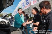 (케이엠뉴스) 이상일 용인특례시장은 21일 역북동 가상현실 스포츠체험센터 주차장에서 열린 장애인차량 무상점검 행사를 찾아 경기도자동차전문정비사업조합 용인시지회 조합원을 격려했다. 이날 행사는 용인시지회 주최‧주관으로 다가오는 추석을 앞두고 장애인 운전자가 안전하게 차량을 운전할 수 있도록 마련됐다. 이상일 시장은 현장에서 “추석을 앞두고 장애인들을 위해 일요일임에도 나오셔서 매우 뜻깊은 행사를 진행해 주시는 경기도자동차전문정비사업조합 용인시지회 회원님들께 감사드리며, 조합의 발전을 기원드린다”고 말했다. 용인시지회 조합원 등 70여 명은 이날 용인시 등록 장애인차량을 대상으로 브레이크 라이닝‧타이어‧배터리 등의 상태를 점검하고, 각종 전구류와 와이퍼‧에어컨 필터 등을 교환했다. 또 에어컨 가스 점검‧소독을 비롯해 엔진오일‧미션오일‧브레이크오일 등 오일류와 부동액점검 및 냉각수 보충, 전조등‧미등‧브레이크등 등 각종 전구류 점검‧교환하는 등 각종 소모품을 교체‧보충했다.