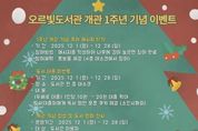 (케이엠뉴스) 동두천시 오르빛도서관이 개관 1주년을 맞아 12월 한 달간 다채로운 문화행사를 진행한다. 오르빛도서관은 지난해 12월 개관 이후 시민들의 높은 관심 속에 지역 대표 독서문화 공간으로 자리매김해왔다. 이번 행사는 지역 주민과 함께 도서관의 성장을 기념하고, 책과 문화가 어우러지는 복합문화공간으로서의 역할을 강화하기 위해 마련됐다. 우선 12월 6일에는 1주년 기념 특별행사가 열린다. '제이시아'와 함께하는 클래식 콘서트, '김슬기 작가 초청 1인 어린이 인형극', 가족 참여형 '크리스마스 무드등 만들기 체험' 등이 진행되며, 카카오톡 친구 추가 이벤트와 떡 나눔 행사 등 시민이 함께 즐길 수 있는 프로그램도 준비된다. 이어 12월 9일에는 '김민식 작가 초청 특강'이 예정되어 있다. 특강은 도서관 4층 어린이자료실에서 시민 100명을 대상으로 진행되며, 시민의 문화 감수성을 높이고 독서문화 저변을 확대하는 계기가 될 것으로 기대된다. 이 밖에도 이용자 설문조사, ‘나만의 서재 꾸미기’ 프로그램, 축하 메시지 게시, 도서 대출 이벤트, 1주년 기념 축하영상 상영 및 원화 전시 등이 진행된