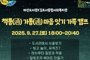 (케이엠뉴스) 김포시 마산도서관에서 오는 9월 27일 오후 6시부터 ‘책통(通) 가통(通) 마음 잇기 가족 캠프’를 운영한다. 이번 프로그램은 마산도서관과 김포시종합사회복지관이 협업하여 진행하며, 가족 단위로 8팀을 모집한다. 다양한 레크리에이션 활동과 하브루타 강의가 접목된 가족 캠프 프로그램이다. 토요일 저녁, 도서관 운영 시간이 종료된 이후에 캠핑장처럼 꾸며진 도서관 내부와 야외 정원에서 진행되며, 도서관에서 보물찾기, 빙고 게임, 하브루타 강의, 달빛조각 북아트 만들기 등 2시간 반 동안 알찬 내용으로 구성되어 있다. 특히 프로그램 중 하브루타 강의는 '하브루타 질문 놀이터', '질문이랑 놀이랑', '하브루타야 부탁해'의 저자인 권문정 아이생각연구소장이 맡아서 진행한다. 9월 18일 오전 10시부터 마산도서관 홈페이지 문화행사 신청 코너에서 온라인으로 신청 가능하다. 한편, 제12회 대한민국 독서대전을 개최지인 김포시 도서관에서는 2025년 연중 내내 다양한 행사가 진행 중이며, 9월 19일~21일 3일간 풍성한 독서대전 본행사를 개최할 예정이다.