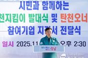 (케이엠뉴스) 신상진 성남시장은 12일 오후 2시 30분 탄천변에서 열린 ‘명품 탄천지킴이 발대식’에 참석했다. 민·관·기업 협력을 통한 지속가능한 탄천 관리 체계 구축을 위해 마련된 이번 발대식에는 신 시장을 비롯해 ESG활성화위원회 관계자, ESG 참여기업 관계자, 명품탄천지킴이 등 300여 명이 함께했다. 이날 행사는 환경지킴이 50명에 대한 위촉장 수여, KT 및 한화비전 ESG 탄천오너십 기업 지정서 전달, 시장 인사말, 기념촬영, 탄천 정화활동 순으로 진행됐다. 신 시장은 인사말을 통해 “시민들의 소중한 휴식처를 관리하고 가꾸는 일은 행정의 힘만으로는 불가능하다”며 “여러분과 함께 탄천을 지키기 위해 오늘 발대식을 마련했다”고 말했다. 이어 “시장 취임 후 탄천 전 구간의 퇴적토를 단계적으로 준설해 유량 흐름을 원활히 하고 수질을 개선했다”며 “앞으로도 지킴이 여러분과 함께 시민들이 휴식하고 다양한 생활체육을 즐길 수 있는 우리 모두의 명품 탄천으로 가꿔나가겠다”고 강조했다. 성남시는 지난 9월 ‘ESG 특별시 성남’ 비전을 선포하고, 탄천 정화 활동을 포함한 ESG 실천 사