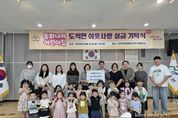 (케이엠뉴스) 광주시 도척면에 위치한 동화나라어린이집은 지난 22일 학부모와 원아 30여 명이 함께 도척면 행정복지센터를 방문해 프리마켓 수익금 145만 3천 원을 어려운 이웃을 위해 써달라며 전달했다. 이번 성금은 지난 6월 27일 어린이집에서 지역 주민과 함께 개최한 프리마켓(바자회)에서 발생한 수익금에 교사들과 원아들이 십시일반 모은 기탁금을 더해 마련됐다. 장경임 원장은 “매년 어린이집에서 프리마켓을 열어 수익금을 기탁하고 있는데 아이들이 이 과정을 통해 어려운 이웃을 배려하고 나눔의 의미를 배우는 것 같다”며 “앞으로도 아이들이 따뜻한 마음을 가진 어른으로 성장할 수 있도록 최선을 다하겠다”고 말했다. 이에 대해 고형근 면장은 “이웃을 위해 지속적으로 나눔을 실천해 주시는 동화나라어린이집 원장님과 학부모님들께 깊이 감사드린다”며 “전달해 주신 성금은 지역의 어려운 이웃들을 위해 소중히 사용하겠다”고 전했다. 한편, 동화나라어린이집은 2018년부터 매해 프리마켓을 열어 수익금을 기탁하며 지역사회의 교육기관으로서 나눔과 실천의 모범을 보이고 있다.
