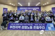 (케이엠뉴스) 부천시 일쉼지원센터는 지난 14일, 감정노동 존중 주간 부천다움 포럼과 기념식을 성공적으로 개최했다. 이번 행사는 ‘감정노동자 보호법’(산업안전보건법 제41조) 시행 7주년을 맞아, 감정노동 존중을 당연한 가치로 확산하기 위해 부천시 일쉼지원센터와 부천상공회의소, 한국노총 부천김포지역지부가 공동으로 추진했다. ▲ 부천다움 포럼 1부 부천다움 포럼에서는 ‘부천지역 가구 방문 노동자의 방문노동 실태’(윤태영, 불평등과 시민성 연구소 연구원), ‘감정노동존중 부천시민다움’(김숙희, 부천시 일쉼지원센터 총괄팀장)의 주제 발표가 있었으며, 이어서 가구 방문 감정노동 현장과 감정노동, 감정노동과 시민성에 관한 지정토론이 이어졌다. ▲ 기념식 2부 기념식은 환영인사, 감정노동 존중주간 선포, 존중시민 감사장 전달 순으로 진행됐다. 감정노동 존중 주간을 노사가 함께 운영하는 기관들과 함께 감정노동 존중주간을 선포하고 이후 이어지는 일주일 동안 ‘감정노동 존중을 확산하기 위한 실천에 함께 하기로 약속했다.(부천도시공사, 부천문화재단, 부천여성청소년재단, 한국만화영상진흥원) 부