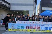 (케이엠뉴스) 고양특례시 일산동구 중산1동 지역사회보장협의체는 지난 21일, 취약계층 70가구에 김장김치를 전달하는‘사랑담은 김장김치 나눔’ 행사를 진행했다고 밝혔다. 이번 행사는 중산1동 마을축제‘으랏차차 중산1동’에서 모금된 기부금과 플리마켓 수익금 및 지역사회보장협의체·적십자봉사회·주민자치회·통장협의회 등 직능단체와 개인기부(오흥압)를 통해 마련됐으며, 사회복지공동모금회로 지정기탁해 김장김치 사업비로 사용됐다. 또한 행사에는 시의원, 중산1동 직능단체장, 지역사회보장협의체 위원 및 지역 주민들이 참석해 자리를 빛냈다. 김장김치는 중산1동장을 비롯해 지역사회보장협의체, 주민자치회, 통장 등 30명이 취약계층 70가구를 방문해 각 10kg씩 전달했다. 특히 복지 사각지대에 놓인 주민들에게 지원함으로써 사회적 불평등을 해소하고 지역사회의 안정적 성장에 기여했다. 이혜경 지역사회보장협의체 민간위원장은 “작은 나눔이지만 어려운 이웃들에게 도움이 되길 바라며 마을 주민 모두가 훈훈한 겨울을 보냈으면 좋겠다”고 말했다. 최정원 중산1동장은 “추운 날씨에도 행사에 함께 해주신 모든 분들께 감사하