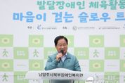 (케이엠뉴스) 남양주시는 9월 18일, 광릉숲 일대에서 장애인과 비장애인이 함께 걷고 공감하는 ‘마음이 걷는 슬로우 트래킹’ 대회의 막을 성황리에 올렸다. 대회는 19일까지 이틀간 진행될 예정이다. 이번 행사는 경기도장애인체육회 ‘2025년 발달장애인 체육활동 지원’ 공모사업의 일환으로, △남양주시북부장애인복지관 △남양주시걷기연맹 진접읍지회 △남양주시장애인체육회가 함께 주관해 개최됐다. 장애인과 비장애인이 함께 걷는 과정을 통해 상호 이해와 배려의 문화를 확산하고, 시민들에게는 자연 속에서 치유와 여유를 되찾는 시간을 제공하기 위해 추진됐다. 시민 누구나 참여할 수 있는 이번 걷기 행사는 봉선사를 출발해 생태습지공원을 경유한 뒤 돌아오는 약 3㎞의 트래킹 코스로 진행된다. 참가자들은 편안하게 천천히 걷는 과정을 통해 옆 사람과 소통하고, 계절의 변화를 느끼며 자연과 교감하는 행복한 시간을 가졌으며, 행사 현장에는 자원봉사자들이 배치돼 참가자들의 안전을 살피고 원활한 행사 진행을 도왔다. 행사 첫날 주광덕 시장을 비롯해 장애인과 비장애인, 자원봉사자 등 참여자 150여 명이 함께해 의미를 더했다. 시