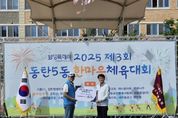 (케이엠뉴스) 지난 21일 ‘제3회 동탄5동 한마음 체육대회’가 동탄5동 체육진흥회 주관으로 다원이음터 축구장에서 성황리에 개최됐다. 이번 대회는 주민들의 화합과 소통을 통해 건강을 증진하고 공동체 의식을 다지기 위해 마련됐으며, 400여 명의 주민과 내빈들이 함께해 활기찬 분위기를 더했다. 행사는 풍물 공연과 색소폰 연주로 흥겨운 막을 올렸고, 개회식에서는 모범시민 표창 수여와 내빈들의 축사가 이어졌다. 또한, 동탄5동 체육진흥회와 감탄정형외과가 의료 지원·후원 협약을 체결해 향후 체육대회를 비롯한 다양한 동 행사에서 의료 지원과 후원을 지속하기로 약속하며 지역사회 상생의 의미를 더했다. 본 경기는 볼풀공 서바이벌, 큰 공 배구, 줄다리기 등 남녀노소가 모두 참여할 수 있는 명랑운동회 종목으로 진행돼 웃음과 열기가 가득했다. 이어진 태권도 축하공연은 참가자들에게 힘찬 에너지를 전하며 분위기를 한층 끌어올렸다. 또한 체험부스 운영과 경품 추첨 이벤트도 마련돼 가족 단위 참가자들에게 다채로운 즐길 거리를 제공했다. 풍성한 상품과 이벤트는 주민들의 큰 호응을 얻으며 축제의 열기를 더했다.