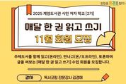 (케이엠뉴스) 인천광역시교육청계양도서관은 인천시민을 대상으로 11월 7일부터 21일까지 시민저자학교 2기 프로그램 ‘매달 한 권 읽고 쓰기’를 운영한다. ‘매달 한 권 읽고 쓰기’는 한 권의 책을 깊이 읽고 그 안에서 발견한 생각과 감정을 글로 표현하는 시민 창작형 독서 프로그램으로 11월의 주제 도서는 김금희 작가의 ‘대온실 수리 보고서’이다. 참가자들은 작품을 중심으로 서로의 다름을 이해하고 글쓰기를 통해 자신과 세상을 성찰하는 시간을 갖는다. 참가 신청은 10월 27일부터 오전 9시부터 계양도서관 누리집에서 가능하며, 자세한 내용은 누리집 공지사항을 참고하거나 종합자료실로 문의하면 된다.