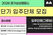 (케이엠뉴스) 경기문화재단 경기상상캠퍼스는 문화예술 기반 실험적이고 창의적인 2026 단기 입주단체를 오는 12월16일까지 모집한다. 2026 단기 입주 모집은 다양한 분야의 문화기획자, 예술가, 청년 활동가, 창업·창직 단체 등이 약 5개월간 경기상상캠퍼스에 입주해 새로운 실험과 협업을 펼칠 수 있는 경험 제공을 위해 마련된 프로그램이다. 경기상상캠퍼스는 이번 모집을 통해 공실을 최소화하는 동시에, 공간 특성에 적합한 역량 있는 단체들을 선제적으로 발굴하여 문화 기반 창업·창직 및 청년 활동의 실험실 역할을 강화할 계획이다. 또한 단기 입주 경험을 제공함으로써 정기 입주로 이어질 수 있는 사전 역량 검증과 활동 기반 마련의 기회를 확장하고, 입주단체 간 교류·협업으로 캠퍼스 전반의 활성화를 도모 할 계획이다. 모집 공간은 생활1980, 청년1981, 디자인1978, 공작1967 등 4개 동이며, 총 15개 단체를 선발한다. 각 공간의 기능에 맞춰 공방, 문화기획·교육, 다장르·융복합, 디자인, 제작 기반 창작 활동 등 다양한 분야의 역량 있는 단체를 모집한다. 입주 기간은 2026년 3월 1일부터 7월 26일까지 약 5개