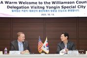 (케이엠뉴스) 이상일 용인특례시장이 13일 용인의 자매도시인 미국 텍사스주 윌리엄슨카운티의 대표단과 만나 양 도시의 발전을 위한 협력 방안을 논의했다. 이날 시청 접견실에서 이 시장은 스티븐 스넬(Steven Snell) 윌리엄슨카운티장과 러스 볼즈(Russ Boles) 윌리엄슨카운티 커미셔너, 데이브 포터(Dave Porter) 윌리엄슨카운티 경제개발파트너십 전무이사를 만나 경제와 산업, 교육 등 다양한 분야에 대해 의견을 나눴다. 이날 이상일 시장을 만난 스티븐 스넬 윌리엄슨카운티장은 전임자인 빌 그래벨(Bill Gravell) 윌리엄슨카운티장에 이어 지난 4월 신임 윌리엄슨카운티장으로 취임했다. 이상일 시장은 “양 도시는 도시 이름을 붙인 명예도로명을 부여하면서 우정을 쌓고, 교류협력을 활발하게 하고 있다”며 “윌리엄슨카운티 대표단과 텍사스 주립대학교 관계자들이 용인에 있는 단국대학교 관계자를 만나 협력관계 구축에 대한 논의를 진행하는 것으로 알고 있는 데 양 도시에 있는 대학이 교류하는 것은 매우 뜻 깊은 일”이라고 말했다. 이 시장은 “윌리엄슨카운티에는 첨단산업 관련 기업들의 입주가 이어지