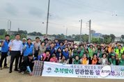 (케이엠뉴스) 평택시 청북읍 행정복지센터는 지난 26일 민족 최대 명절 추석을 앞두고 청북공설공원묘지 일대에서 민관이 함께한 대청소 활동을 펼쳤다. 이날 이장협의회와 새마을지도자회, 새마을부녀회 등 3개 단체와 청북읍 행정복지센터 직원 등 50여 명이 참여해 묘지 주변 도로와 공용부지를 중심으로 잡초 제거, 쓰레기 수거 등 청소 취약 구간을 집중 정비하고, 무단으로 버려진 폐기물을 말끔히 수거하는 등 쾌적한 성묘 환경 조성에 힘썼다. 참여 단체 대표들은 “우리 마을 환경은 우리가 지킨다는 마음으로 앞으로도 환경 정화 활동에 적극 동참하겠다”라고 입을 모았다. 이철은 청북읍장은 “추석을 맞아 깨끗한 마을 만들기를 위해 자발적으로 동참하신 모든 분께 깊이 감사드리며, 앞으로도 정기적인 환경 정비 활동과 주민 참여 확대를 통해 쾌적하고 품격 있는 청북읍을 만들어 가겠다”라고 말했다.