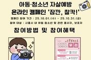 (케이엠뉴스) 시흥시자살예방센터는 오는 10월 1일부터 31일까지 한 달간 아동ㆍ청소년을 대상으로 생명존중 인식 확산 캠페인을 운영한다. 이번 캠페인은 아동ㆍ청소년이 심리적 지지를 얻고 생명의 소중함을 되새기도록 돕는 한편, 이를 누리소통망(SNS)을 통해 또래와 나눌 수 있도록 마련됐다. 캠페인 참여 방법은 시흥시 관내 교육기관, 행정복지센터, 아동ㆍ청소년 관련 기관 등에 부착된 자살 예방 홍보 스티커를 촬영한 후, 개인 누리소통망(인스타그램)에 스토리 또는 게시물 형태로 올리면 된다. 이후 해당 게시물을 캡처해 정보무늬(큐알코드)를 통해 연결된 네이버 폼에 제출하면 참여가 완료된다. 이기연 시흥시자살예방센터장은 “이번 캠페인이 아동ㆍ청소년들이 온라인 공간에서 자신과 친구들의 소중함을 되돌아보는 계기가 되길 바란다”라며 “많은 청소년이 적극적으로 동참해 건강한 생명존중 문화가 확산하길 기대한다”라고 말했다.