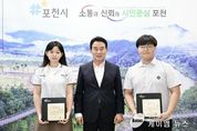 (케이엠뉴스) 포천시는 지난 8월 29일 포천시청에서 학업 및 다양한 분야에서 뛰어난 성취를 거둔 우수 학생 2명에게 표창장을 수여했다. 이번 표창은 국제대회와 방송 프로그램 등에서 두각을 드러낸 학생들의 성취를 널리 알리고, 청소년들의 도전과 성장을 응원하기 위해 마련했다. 송우고등학교 박미진 학생은 미국 뉴욕에서 열린 ‘2025 IYAC 글로벌 청소년 미술대회’에서 동상을 수상하며 세계 무대에서 예술적 잠재력을 입증했다. 동남고등학교 최진서 학생은 한국방송공사(KBS) ‘우리말 겨루기’ 여름방학 특집에서 최종 우승을 차지해, 탁월한 언어능력으로 포천시 교육의 위상을 높였다. 백영현 시장은 “박미진, 최진서 학생의 성취는 포천 청소년의 저력을 보여주는 값진 성과”라며 “교육발전특구 시범지역 지정과 교육정책 추진의 결실이 우수 인재 배출로 이어지고 있다”고 말했다. 이어 “앞으로도 학생들이 재능을 마음껏 펼칠 수 있도록 지원을 강화하겠다”고 덧붙였다.