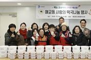 (케이엠뉴스) 수원시 팔달구 매교동 새마을부녀회는 지난 16일 연말을 맞아 매교동 행정복지센터 대회의실에서 관내 홀몸어르신 및 저소득층을 위한 ‘사랑의 떡국 나눔 행사’를 진행했다. 이날 새마을부녀회 회원들은 새해를 앞두고 따뜻한 마음을 담아 떡국 밀키트 등 음식을 정성껏 준비해 관내 홀몸어르신과 저소득층 50가구에 직접 전달하며 이웃사랑을 실천했다. 이미정 매교동 새마을부녀회장은 “정성껏 준비한 떡국이 추운 겨울을 보내는 이웃들에게 힘이 되길 바란다”며 “앞으로도 지역의 어려운 이웃들을 위한 나눔 활동을 꾸준히 이어가겠다”고 말했다. 이지효 매교동장은 “항상 지역사회를 위해 애써주시는 새마을부녀회 회원들께 감사드린다”며 “이웃들에게 전달된 따뜻한 마음이 겨울을 보내는 데 도움이 되길 바란다”고 전했다.