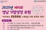 (케이엠뉴스) 성남산업진흥원은 '2026년 스케일업 지원 정책'을 주제로 오는 12월 11일 11시 30분부터 2025년 제4회 '성남기업성장포럼'을 개최한다. ‘성남기업성장포럼’은 2024년 9월 첫 포럼 개최 이후, 매회마다 참석자가 증가하여, 지난 10월 제3회 포럼에는 170여명의 기업 임직원과 10여개 기업지원기관이 참여하는 등 성남시 기업 성장을 위한 대표 네트워크로 성장하고 있다. 성남시 소재 기업 임직원은 누구나 포럼 참석이 가능하며, 성남산업진흥원 홈페이지를 통해 참석 신청을 할 수 있다. 이번 포럼에서는 '기업지원 미니설명회'에서 시니어 오너 기업의 엑시트(Exit) 전략에 대한 법무법인 지평의 발표에 이어 창업진흥원과 중소기업기술정보진흥원이 2026년 스케일업 지원방향과 주요 사업을 소개한다. 김윤정 창업진흥원 혁신사업화본부 본부장은 창업 초기단계와 성장단계 기업에 대한 내년도 지원 내용을 설명하고, 차인호 중소기업기술정보진흥원 사업총괄관리실 책임연구원은 중소기업 기술혁신(R&D)을 위한 주요 사업을 안내한다. 또한 성남시 소재 2개사가 자사의 기술과 비즈니스 모델을