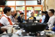 (케이엠뉴스) 추석연휴 첫날인 3일 김동연 경기도지사가 파주 문산자유시장을 찾아 통큰세일 지원 확대와 문산자유시장-DMZ 지역 평화 관광 홍보 강화를 약속했다. 이번 방문은 민족 대명절을 앞두고 도민 장바구니 물가를 안정시키고, 경기침체로 어려움을 겪는 소상공인과 전통시장 상인들에게 힘을 보태기 위한 차원에서 마련됐다. 김동연 지사는 지역 상인들과 오찬 간담회를 갖고 경기침체와 소비 위축 등으로 어려움을 겪고 있는 현장의 목소리를 직접 들었다. 상인들은 경기 살리기 통큰세일 행사 시 전통시장 상권별 지원액 상향과 문산자유시장-DMZ 지역 평화 관광 홍보를 요청했다. 이에 김동연 지사는 “경기도는 9월 추경을 통해 20억 원을 추가 확보, 하반기 총 52억 원 규모로 통큰세일을 진행할 예정”이라며 “통큰세일 기간 많은 도민께서 전통시장을 찾을 수 있도록 다각적이고 전방위적인 홍보를 실시하겠다”고 말했다. 이어 “경기관광공사를 통해 문산자유시장-DMZ 지역 평화 관광 홍보를 확대하고 디엠지 오픈(DMZ OPEN) 스포츠 행사와 캠프그리브스, 도라산 평화공원 안내소 등에 홍보물을 비치하도록