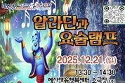 (케이엠뉴스) 예산군은 아동친화도시 조성의 일환으로 가족참여형 뮤지컬 ‘알라딘과 요술램프’를 12월 21일 예산앤유행복센터에서 공연한다고 밝혔다. 이번 공연은 가족이 함께 즐기는 문화 체험을 통해 놀이·문화 영역 확대와 아동 발달권 증진을 도모하기 위해 마련됐다. 뮤지컬 ‘알라딘과 요술램프’는 원작을 아이들의 눈높이에 맞춰 재구성하고 무대체험 등 직접 참여 요소를 강화해 가족 모두가 몰입할 수 있도록 구성됐다. 관람을 희망하는 관내 아동 동반 가족은 12월 1일부터 12월 12일까지 사전 접수할 수 있으며, 선착순 모집으로 인원 충족 시 조기 마감된다. 신청은 공연 포스터의 정보무늬(QR코드)를 스캔해 신청서 작성 후 제출하는 방식으로 진행된다. 군 관계자는 “참여형 뮤지컬을 통해 관객 모두가 무대의 주인공이 돼 상상력과 감성을 키우는 특별한 시간이 되길 바란다”며 “관내 아동이 폭넓은 문화 경험을 누릴 수 있도록 다양한 프로그램을 마련해 아동친화도시 조성을 위해 노력하겠다”고 말했다. 한편 군은 아동의 권리가 존중받고 모든 아동이 행복하게 성장할 수 있는 환경을 만들기 위