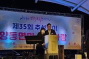 (케이엠뉴스) 양평군 양동면은 지난 6일, 쌍학교 야외무대에서 제35회 추석맞이 면민 노래자랑을 성황리에 개최했다고 밝혔다. 이번 행사는 비가 내리는 궂은 날씨에도 불구하고 면민들의 뜨거운 참여와 열정으로 추진됐으며, 고향을 찾은 귀성객과 주민들이 함께 어우러져 명절의 흥과 정을 나누는 화합의 장이 됐다. 특히 이날 행사에는 전진선 양평군수가 참석해 직접 인사말을 전하고 경품 추첨에도 참여하며, 주민들과 소통하는 시간을 가졌다. 전진선 양평군수는 “비 오는 날씨에도 함께해 주신 양동면 주민 여러분께 진심으로 감사드린다”며 “오늘처럼 한마음으로 웃고 즐기는 모습이 바로 행복한 양평의 힘”이라고 전했다. 노래자랑 본선에는 30명의 참가자가 무대에 올라 다양한 장르의 노래와 퍼포먼스를 선보이며 큰 호응을 얻었다. 초대가수 한가빈의 축하 무대와 각종 경품 추첨 이벤트도 더해져 현장은 열띤 분위기로 가득했다. 정창업 양동면장은 “이번 행사는 주민 한 분 한 분의 참여로 완성된 뜻깊은 자리였다”며 “앞으로도 지역의 정과 문화를 함께 나눌 수 있는 자리를 지속적으로 마련해, 모두가 즐겁고 활기찬 양