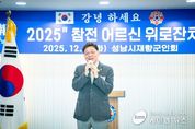 (케이엠뉴스) 성남시의회는 2일 중원구 산성대로 소재 루미에르 애비뉴에서 열린 재향군인회‘2025년 참전어르신 위로잔치’에 참석했다. 이번 행사는 국가를 위해 헌신한 참전유공자들의 공헌을 예우하고 감사의 마음을 전하기 위해 마련됐다. 이날 행사에서는 참전어르신들을 위한 식사 대접과 함께 위로 공연, 소통의 시간이 이어지며 훈훈한 분위기가 펼쳐졌다. 참석자들은 참전유공자들의 노고에 깊은 감사의 뜻을 전하며 건강과 안녕을 기원했다. 안광림 부의장은“대한민국의 자유와 평화는 참전용사분들의 헌신 속에서 지켜졌다”며“성남시의회도 어르신들의 명예와 복지가 더욱 두터워질 수 있도록 지속적으로 관심을 기울이겠다”고 말했다.