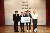 (케이엠뉴스) 남양주시는 15일 제80주년 8.15 광복절 경축식에서 ㈜기원위스키증류소가 저소득 독립유공자 유족 지원을 위해 기부금 1천만 원을 남양주시복지재단에 전달했다고 밝혔다. 이번 기부금은 광복 80주년을 기념해 제작한 한정판 위스키 판매 수익금으로 마련됐다. 기원은 독립운동가 이석영 선생을 기리기 위해 시와 협약을 체결하고, 판매 수익금 일부를 지역사회 공헌 활동에 사용하겠다는 뜻을 지속적으로 밝혀왔다. 도정한 대표는 “광복의 의미를 다시 새기며 그 뜻을 이어온 독립유공자 유족분들께 조금이나마 보탬이 되고 싶었다”며 “앞으로도 기업이 지역과 함께하며 사회적 책임을 다할 수 있도록 노력하겠다”고 말했다. 주광덕 시장은 “귀한 마음을 전해주신 기원위스키증류소에 깊이 감사드린다”며 “이번 기부금을 비롯해 시에서도 유족분들의 생활 안정과 복지 향상에 실질적인 도움이 되도록 최선을 다하겠다”고 전했다. 시는 이번 나눔을 역사적 의미와 사회적 책임을 함께 실천한 모범적인 사례로 평가하며, 기부에 담긴 진정성이 시민들에게 깊은 울림을 전할 것으로 기대하고 있다.