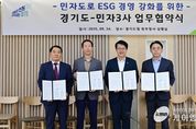 (케이엠뉴스) 경기도는 24일 경기도청 북부청사에서 경기남부도로(주), 제삼경인고속도로(주), 일산대교(주) 등 도내 민자도로 사업자 3개사와 ESG(환경·사회·투명) 경영 강화를 위한 업무협약을 체결했다. 지속가능한 도로 환경 조성과 지역사회 공헌활동 활성화를 위해 마련된 이번 협약체결에는 김대순 경기도 행정2부지사와 민자도로 사업자 대표이사가 참석했다. 협약의 주요내용으로는 환경 측면에서 온실가스 배출을 최소화하도록 친환경 시설물․장비 도입에 힘쓰고, 사회적 책임으로는 지역사회 공헌활동과 도로 이용객의 안전․보건 강화를 포함한다. 지배구조 부문으로는 법과 윤리를 준수하고 투명한 기업 운영 체계를 마련하는 데 적극 협력하는 내용을 포함한다. 경기도는 민자사업자의 원활한 ESG 경영을 위해 필요시 적극적으로 행정지원할 예정이며, 협약기관 간 실무협의회를 구성하여 ESG 경영 강화에 대하여 지속적으로 논의할 계획이다. 이번 협약으로 민자도로 수익의 지역사회 환원을 통해 민자도로에 대한 ‘비싼 요금’ 또는 ‘과도한 수익 추구’라는 기존 인식을 전환하고, RE100과 같은 글로벌 환경 목표에도 기여할 수