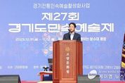 (케이엠뉴스) 1일 고양특례시 일산호수공원 노래하는 분수대 일원에서 개최된 '제27회 경기도 민속예술제' 개막식에서 이동환 시장이 축사했다. 개막식에서는 고양문화원 취타대의 연주로 시작된 31개 시군 문화원의 입장 퍼레이드에 이어 경기도의 화합을 기원하는 고사가 진행돼 축제의 의미를 더했다. 이동환 시장은 "화합과 대동의 가치에 집중한 이번 축제가 경기도를 대표하는 축제도 더욱 발전해 나가길 바란다"라고 전했다.