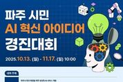 (케이엠뉴스) 파주시는 10월 13일부터 11월 17일까지 시민이 직접 참여하는 ‘파주 시민 인공지능(AI) 혁신 아이디어 경진대회’를 개최한다고 밝혔다. 이번 경진대회는 대한민국 국민 누구나 참여 가능하며, 인공지능(AI)을 활용해 행정과 시민 생활 속 다양한 문제를 해결할 수 있는 창의적 아이디어를 발굴하기 위한 시민 참여형 공모전으로, ‘인공지능(AI)과 함께하는 시민 중심의 파주, 인공지능(AI) 선도 도시’ 구현을 목표로 하고 있다. 개인 또는 팀 단위로 참가할 수 있으며, 참가자는 지정 주제(① 출판단지 활성화, ② 재해·재난 관리, ③ 동물 보호, ④ 도로 안전, ⑤ 교통 질서) 또는 자율 주제(파주시 현안 해결을 위한 생성형 인공지능(AI) 서비스 개발) 중 하나를 선택해 아이디어를 제출하면 된다. 예선은 온라인 방식으로 진행되며, 심사위원 평가 70%와 참가자 투표 30%를 합산해 상위 10개 팀이 본선에 진출한다. 본선은 현장 발표 형식으로 열리며, 창의성, 실현 가능성, 적합성, 인공지능(AI) 기술 활용성 등을 종합 평가해 최종 순위가 결정된다. 총 상금은 800만 원 규모로,