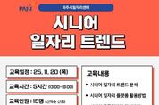 (케이엠뉴스) 파주시는 10월 17일부터 11월 12일까지 ‘시니어 일자리 트렌드’ 교육에 참여할 교육생 15명을 모집한다. 이번 교육은 노년층의 취업률 향상을 위한 프로그램으로, 파주시에 거주하는 60세 이상 구직자를 대상으로 진행된다. 교육 과정은 ▲노인 일자리 동향 ▲일자리 유형별 특징 ▲참여 절차 및 취업 연계 방안 등이며, 노년층이 실제 일자리에 참여하는 데 필요한 정보를 습득할 수 있도록 구성됐다. 교육 신청은 파주시 일자리센터 또는 문산·운정행복센터 내 일자리 상담 창구 방문 또는 온라인(구글 서식)을 통해 할 수 있다. 이이구 민생경제과장은 “최근 노인 일자리는 인구 고령화에 따라 다양화되고 전문화되는 추세”라며 “이번 교육을 통해 어르신들이 자신의 경험과 역량을 살려 적성에 맞는 일자리를 찾고, 보다 활기찬 노후를 설계하기를 바란다”라고 말했다.