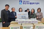 (케이엠뉴스) 수원시 권선구 금곡동은 지난 28일 ㈜케이티스포츠로부터 김장 나눔 행사를 위한 후원금 100만원을 전달받았다고 밝혔다. 이번에 기부된 성금은 김치를 구입하는 데에 사용됐으며, 구입한 김장김치는 지역 내 취약계층 가구에 직접 전달됐다. 이호식 대표이사는 “이번 기부를 통해 지역의 어려운 이웃들에게 실질적인 도움이 되길 바란다며 앞으로도 지역사회와 함께하는 다양한 나눔 활동을 지속적으로 이어가겠다”라고 말했다. 장성임 금곡동장은 “㈜케이티스포츠에서 김장 나눔을 위해 후원금을 전달해 주셔서 감사드린다며, 이번 후원으로 마련된 김장김치가 취약계층의 겨울나기에 큰 도움이 될 것”이라며 “앞으로도 주민들이 따뜻한 겨울을 보낼 수 있도록 지원을 이어가겠다”라고 전했다.