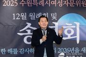 (케이엠뉴스) 이재준 수원시장이 3일 인계동 한 음식점에서 열린 수원시 여성자문위원회 송년 행사에 참석해 “아빠들을 위한 프로그램 운영부터 여성 권익 증진을 위한 후원까지 올해 여성자문위원회가 보내주신 따뜻한 성원에 감사드린다”고 말했다. 이어 “내년에도 수원시를 대표하는 여성단체로서, 여성들과 이웃들의 삶 구석구석을 살펴 주시길 바란다”고 덧붙였다. 이날 행사에는 수원시 여성자문위원회 김외순 회장과 회원 등 50여 명이 참석했다. 여성복지 발전에 이바지한 유공자에게 수원시장상, 수원시의회 의장상, 경기도지사상, 국회의원상 등을 수여했다.