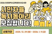 (케이엠뉴스) 인천광역시교육청연수도서관은 시민의 자발적인 독서활동을 지원하고 독서생활화를 확산하기 위해 ‘2026년 시민자율독서동아리’를 모집한다. 독서에 관심 있는 시민들이 자율적으로 모여 책을 읽고 의견을 나누는 독서모임으로, 인천시에 거주하는 성인 5인 이상이면 시민자율독서동아리를 신청할 수 있다. 선정된 동아리는 2026년 2월부터 12월까지 활동하며, 연수도서관 내 활동공간 대관, 온라인 활동 지원, 30만 원 상당의 활동도서를 지원받는다. 신청 기간은 12월 29일부터 2026년 1월 9일까지 선착순으로 접수하며, 참여를 희망하는 동아리는 신청서를 작성해 이메일로 제출하면 된다. 자세한 사항은 연수도서관 누리집 공지사항을 확인하거나 독서문화과로 문의하면 된다.