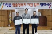 (케이엠뉴스) 가평군 가평읍 행정복지센터는 최근 가평읍지역사회보장협의체(지사협), 유일닭강정과 ‘맞춤형복지 지원 업무협약’을 체결했다. 이번 협약으로 유일닭강정은 매월 가평읍 맞춤형복지팀에서 추천한 저소득계층 10가정에 닭강정을 지원해 주기로 했다. 장석조 가평읍장은 “복지사각지대 발굴뿐 아니라 민간 자원 연계가 복지 수준을 높이는 데 큰 역할을 한다”며 “이번 협약이 공공자원만으로는 충족하기 어려웠던 복지수요를 보완하는 데 큰 도움이 될 것”이라고 말했다. 유병훈 유일닭강정 대표는 “우리 지역 주민들과 마음을 나누고 싶어 맞춤형복지 지원 협약에 참여했다”며 “앞으로도 어려운 이웃을 위한 나눔과 봉사를 꾸준히 실천하겠다”고 밝혔다.