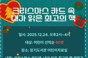 (케이엠뉴스) 김포시 장기도서관은 '크리스마스 카드 속 내가 읽은 최고의 책'을 12월 24일 오후 2시부터 4시까지 어린이 자료실에서 선착순 60명을 대상으로 운영한다. '크리스마스카드 속 내가 읽은 최고의 책'은 장기도서관 사서들이 직접 운영하는 프로그램으로 어린이들이 카드에 1년간 읽은 책 중 가장 좋았던 책의 제목과 이유를 쓰고 엄마 아빠에게도 하고 싶은 말을 써서 크리스마스 양말 카드 봉투에 담아 보는 활동이다. ‘2025년 대한민국 독서대전 김포’를 통해 많은 어린이가 장기도서관에서 방문해 책을 읽고, 어린이 특별 프로그램을 수강했다. 이번 행사는 연말 책 읽기를 권장하고, 비독자인 어린이가 독자로 도서관을 즐겁게 방문하여 다양한 활동을 할 수 있도록 진행할 예정이다.