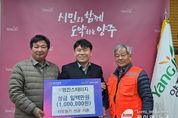 (케이엠뉴스) ㈜영진스테이지는 지난 27일 양주시 남면행정복지센터를 방문해 지역 내 어려운 이웃을 위한 이웃돕기 성금 100만 원을 전달했다. 남면 상수리에 위치한 ㈜영진스테이지는 특수조명·무대기계장치·호텔 연회장 설비 등 무대기술 분야 전문기업이다. 이날 기부식에는 김동현 ㈜영진스테이지 대표, 백운구 남면장, 김영권 남면 지역사회보장협의체 공동위원장이 참석해 따뜻한 나눔의 의미를 함께 했다. 기부금은 사회복지공동모금회를 통해 남면 관내 취약계층을 위해 사용될 예정이다. 김동현 대표는 “지역에서 받은 사랑을 다시 지역에 돌려드리고 싶었다”며 “작은 도움이지만 어려운 이웃들에게 힘이 되기를 바란다”고 전했다. 백운구 남면장은 “지역 기업의 따뜻한 참여가 큰 힘이 된다”며 “소중한 성금이 꼭 필요한 분들께 전달되도록 최선을 다하겠다”고 말했다. 김영권 공동위원장 역시 “협의체는 민관이 함께 복지 사각지대를 살피고 지원하는 역할을 하고 있다”며 “이런 뜻깊은 나눔이 더 많은 이웃들에게 희망이 되기를 기대한다”고 전했다. 남면은 앞으로도 지역 기업 및 단체와의 협력을 통해 지속적인 나눔문화 확