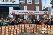 (케이엠뉴스) 오산시 세마동 행정복지센터는 세마동 단체연합이 11월 19일과 20일 이틀간 세마동 행정복지센터 1층 광장에서 지역 취약계층을 위한 ‘2025년 세마동 사랑의 김장담그기’ 행사를 따뜻한 분위기 속에서 진행했다고 밝혔다. 이번 김장 나눔 행사는 19일 김장 속재료 준비를 시작으로, 20일 속 채우기와 포장 등 본 작업이 이어졌으며, 세마동 단체연합은 ‘손끝의 온정을 담아 전합니다’라는 슬로건 아래 정성을 모아 행사를 진행했다. 올해 마련된 김장은 총 480포기 규모로, 세마동 관내 독거노인, 저소득층, 한부모 가정 등 어려운 이웃들에게 20일 당일 전달됐다. 신정순 세마동 새마을부녀회장은 “김장 나눔은 세마동 주민들이 마음을 모아 서로를 돌보는 뜻깊은 시간”이라며 “작은 정성이지만 필요한 이웃들에게 따뜻함이 전해지길 바란다”고 말했다. 유미정 세마동장은 “김장담그기 행사는 세마동 주민들의 마음이 모여 만들어진 정성의 상징”이라며 “정성껏 담근 김치가 겨울을 앞둔 이웃들에게 큰 힘이 되길 바란다”고 전했다.