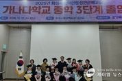 (케이엠뉴스) 화성특례시는 17일 화성시평생학습관에서 ‘2025년 학력인정 성인문해교실 가나다학교 졸업식’을 개최했다. 학력인정 성인문해교실 가나다학교는 사회적·경제적 이유로 학령기 배움의 기회를 놓친 만 18세 이상 비문해·저학력자를 대상으로 문해 교육을 진행하는 프로그램이다. 시는 지난 2020년 12월에 교육부 학력 인정 문해교육 프로그램 운영 기관으로 지정된 이후 학력 인정 성인문해교육을 운영하고 있으며, 올해는 지난 3월 4일부터 12월 11일까지 연 450시간의 교육과정으로 진행됐다. 시는 지난 2022년 초등 3단계 졸업생 15명, 2024년 초등 3단계 졸업생 11명을 배출한 데 이어, 올해는 처음으로 중학 3단계 졸업생 11명을 배출했다. 또한, 중학 1단계는 8명이, 초등 1단계는 9명이 수료했다. 졸업식에서는 학습자 및 가족, 강사들이 참석한 가운데, 중학과정을 마친 졸업생들에 대한 졸업장과 상장 수여, 모범 졸업생 경기도교육감 표창장 수여 등이 진행돼 학습자들의 성과를 함께 축하하고 졸업의 기쁨을 나누는 시간을 가졌다. 학습자 대표는 “가나다학교가 없었다면 학교도