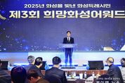 (케이엠뉴스) 화성특례시의회는 17일, 수원과학대학교 SINTEX에서 열린 ‘제3회 희망화성어워드’에 참석해 한 해 동안 지역사회 곳곳에서 헌신과 나눔을 실천해 온 시민들의 뜻깊은 성취를 함께 축하했다. 이날 행사에는 배정수 의장, 이용운 의원이 참석했고, 수상자와 시민 등 약 250명이 함께했다. 무대는 식전 공연을 시작으로 시민참여 영상 시청·표창 수여(시장상·의장상)·어린이합창단 공연 순으로 진행됐다. 행사장은 한 해의 노력을 되돌아보고 서로를 격려하는 따뜻한 공감과 존중의 분위기로 가득 찼다. 배정수 의장은 “오늘 우리는 이 도시를 빛내고 가꿔온 사람의 희망이 한데 모여 큰 빛을 이루는 순간을 함께하고 있다”며 “희망은 저절로 자라지 않고, 누군가의 손에서 시작되는데, 수상자 여러분이 바로 화성을 지켜온 뜨거운 사랑의 손이자 공동체의 등대지기”라고 깊은 존경과 감사의 뜻을 전했다. ‘희망화성어워드’는 나눔·봉사·사회공헌 등 각 분야에서 지역사회의 귀감이 된 시민과 단체를 발굴·격려하기 위해 마련된 행사로, 화성특례시의 연대와 공동체 가치를 상징하는 대표적인 시민 포상 행사로 자리매김하고 있다.