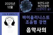 (케이엠뉴스) 평택시립 비전도서관이 오는 12월 18일 저녁 7시 조윤범 바이올리니스트를 초청하여 ‘음악사의 하이라이트’를 주제로 야간 인문학 강연을 진행한다. ‘음악사의 하이라이트’는 방대한 서양 음악사의 흐름을 2시간으로 압축하여 마치 영화를 보듯 자연스럽게 이해할 수 있는 강연이다. 각 시대의 대표적인 사건과 음악적 변화를 통해 클래식을 깊이 있고 풍부하게 만날 소중한 기회가 될 것으로 기대된다. 조윤범 바이올리니스트는 콰르텟엑스의 리더이자 편곡자, 저자, 음악 해설가, 방송진행자로 '콰르텟엑스와 함께하는 조윤범의 파워클래식', CBS음악FM '아름다운 당신에게', KBS1TV '문화책갈피'의 '청바지를 입은 클래식', MBC라디오 '굿모닝FM'의 클래식 음악 코너, tvN '어쩌다 어른'에서 진행과 강연을 통해 클래식의 대중화에 앞장섰으며, 최근에는 EBS1 '나의 두 번째 교과서' 음악편에서 10강에 걸친 방송을 진행해 큰 호응을 얻고 있다. 지은 책으로는 '조윤범의 파워클래식 1, 2권', '나는 왜 감동하는가', '클래식 A-yo'가 있다.