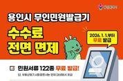 (케이엠뉴스) 용인특례시는 2026년 1월 1일부터 지역 내 설치된 무인민원발급기에서 발급되는 민원서류 수수료를 전면 면제한다고 25일 밝혔다. 이번 조치는 ‘용인시 제증명 등의 수수료 징수 조례’ 일부를 개정해 시민들의 행정 서비스 이용 부담을 줄이기 위해 마련됐다. 이에 따라 2026년부터 지역 내 무인민원발급기에서는 주민등록등·초본, 가족관계서류, 토지·건축 관련 서류 등 총 122종의 민원서류를 무료로 발급받을 수 있다. 다만, 법원 소관 사무인 부동산등기사항증명서는 면제 대상에서 제외된다. 현재 시는 시청과 구청, 읍·면·동 행정복지센터를 비롯해 병원, 은행 등 다중이용시설에 총 57대의 무인민원발급기를 운영하고 있다. 이상일 시장은 “이번 수수료 전면 면제로 시민 누구나 시간과 비용의 제약 없이 무인민원발급기를 이용할 수 있을 것으로 기대한다”며 “앞으로도 시민의 일상에서 체감할 수 있는 편리하고 효율적인 민원환경 조성을 지속적으로 추진하겠다”고 말했다. 한편, 지문 인식이 어려워 무인민원발급기 이용에 불편을 겪는 경우에는 가까운 행정복지센터에서 지문을 재등록하거나, ‘모바일