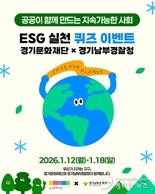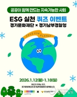 (케이엠뉴스) 경기문화재단(대표 유정주)과 경기남부경찰청이 공공 협업을 통해 ESG 가치 확산에 나선다. 경기문화재단은 경기남부경찰청과 함께 오는 1월 12일부터 1월 18일까지 ‘ESG 실천을 위한 SNS 공동 이벤트’를 진행한다고 밝혔다. 이번 이벤트는 친환경 에너지 기반 치안 장비 ‘팔달봇’을 운영하며 탄소 절감에 앞장서고 있는 경기남부경찰청과, 문화예술 공공기관 최초로 ESG 경영을 선언한 경기문화재단이 협력해 기획됐다. 양 기관은 SNS를 활용한 참여형 이벤트를 통해 ESG의 의미와 실천 가치를 도민들에게 쉽고 친근하게 전달할 예정이다. 경기문화재단은 ESG의 핵심 가치인 환경(Environment), 사회(Social), 지배구조(Governance)를 주제로 한 퀴즈 이벤트를 진행한다. 참여자들은 경기문화재단 공식 인스타그램 계정을 통해 이벤트에 참여할 수 있으며, 퀴즈 정답을 댓글로 남기고 함께 지구를 지키고 싶은 친구를 태그하면 추첨을 통해 경품을 받을 수 있다. 경기남부경찰청은 친환경 에너지 기반 치안 장비의 이름을 맞히는 퀴즈 이벤트를 별도로 운영한다. 경기남부경찰청 공식 인스타그램 계정을