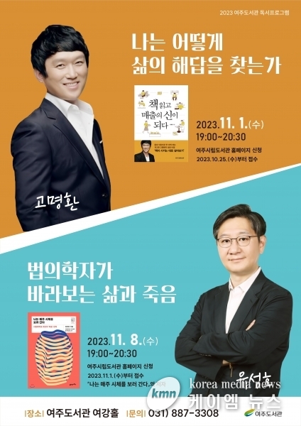 (케이엠뉴스) 여주시 평생교육과 여주도서관에서는 오는 11월 1일과 8일 양일간 방송인 고명환과 법의학자 유성호를 초청해 특강을 진행한다.