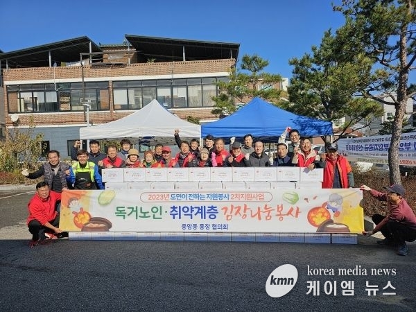 정이화 중앙동장은 “추운 날씨에도 불구하고 한마음 한뜻으로 김치 나눔 봉사활동에 참여해 주신 통장님들께 감사드리며 주변의 어려운 이웃에게 더욱 관심을 가지고 소외된 계층이 없도록 최선을 다하겠다”고 전했다.