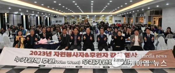 (케이엠뉴스) 동두천시 장애인종합복지관은 지난 29일 동두천농협 하나로웨딩홀 3층에서 ‘2023년 자원봉사자&후원자 감사 행사’ [누가원해 후원, 우리가원해 위원]를 진행했다.