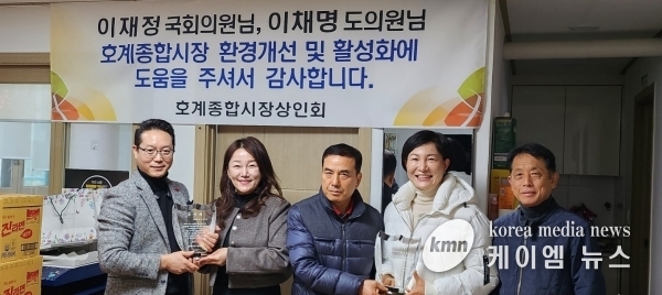 (케이엠뉴스) 이채명 경기도의원은 이재정 국회의원과 안양 호계종합시장 비가림막 시설 교체 예산 확보 성과를 거둬 8일 안양 호계종합시장상인회로부터 감사패를 받았다.