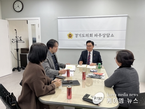 (케이엠뉴스) 경기도의회 경제노동위원회 이용욱 의원은 16일 파주상담소에서 서영대 조헌진 교수와 파주시협동조합협회 임원과의 정담회를 통해 지역에서 활동하는 사회적 경제조직의 가치와 기능에 대한 제고가 필요하다며 현장에서 필요한 지원방안을 정책화하기 위해 최선을 다하겠다고 밝혔다.