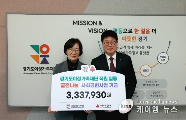 (케이엠뉴스) 경기도여성가족재단이 임직원 ‘끝전 나눔 운동’으로 약 330만원을 사회복지공동모금회 경기도지회에 전달했다.