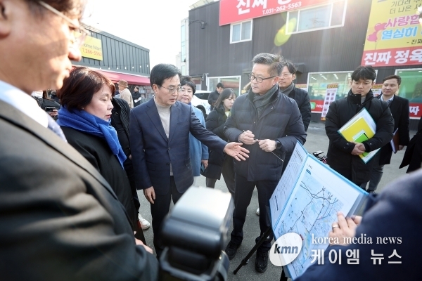 (케이엠뉴스) 김동연 경기도지사가 상습적인 침수와 차량정체로 용인시·성남시와 함께 개선을 추진하고 있는 고기교를 찾아 현장을 점검했다.